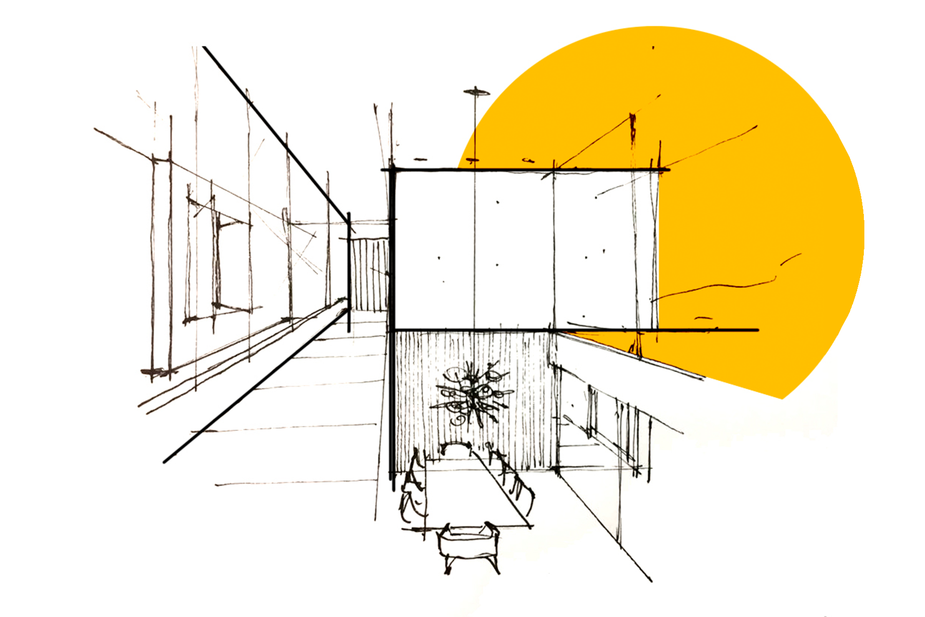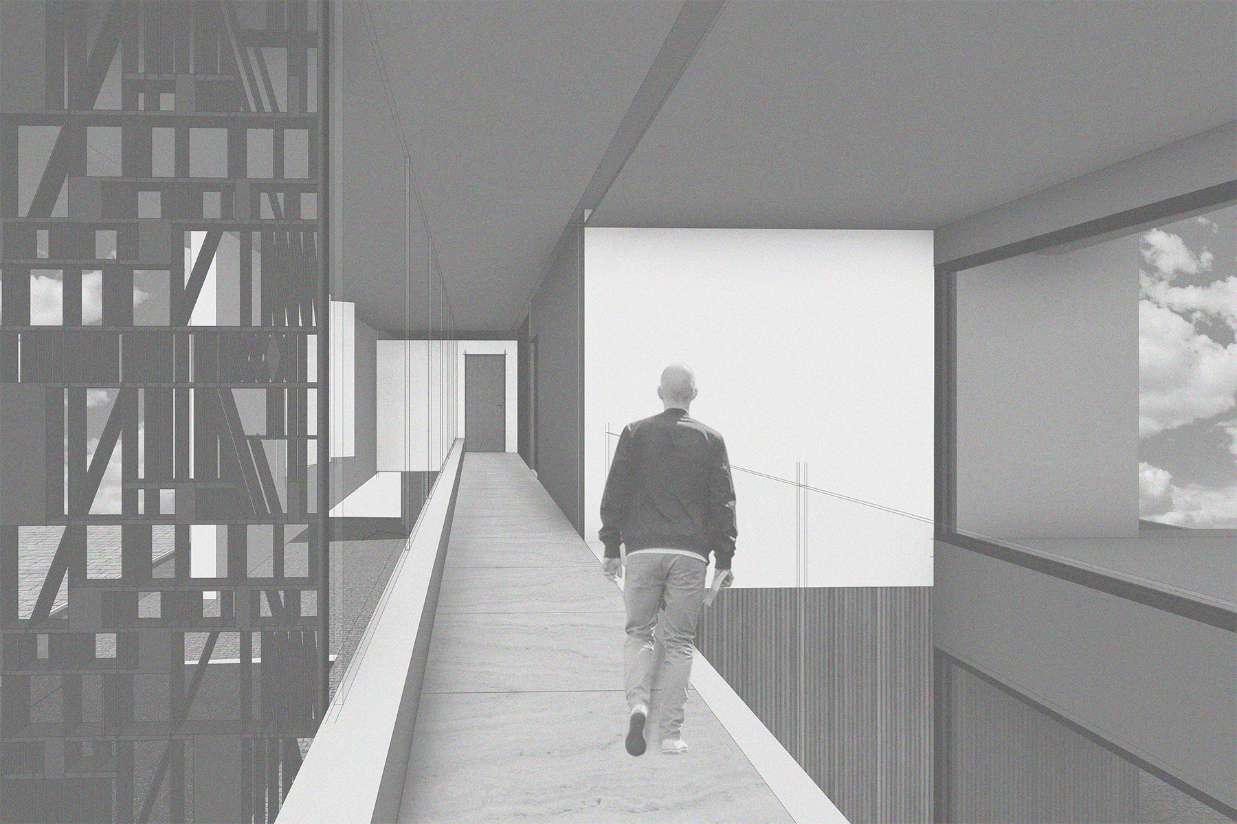 Ambientes bem iluminados e integrados visualmente entre si, enchem de fluidez espacial o projeto que vai sendo descortinado no percurso, desde a marquise de acesso, que se abre para o ambiente social, se mistura com a escada e percorre pela passarela que passa na frente da biblioteca, levando o visitante ou morador a ir descobrindo cada percepção do espaço até a chegada dos quartos.