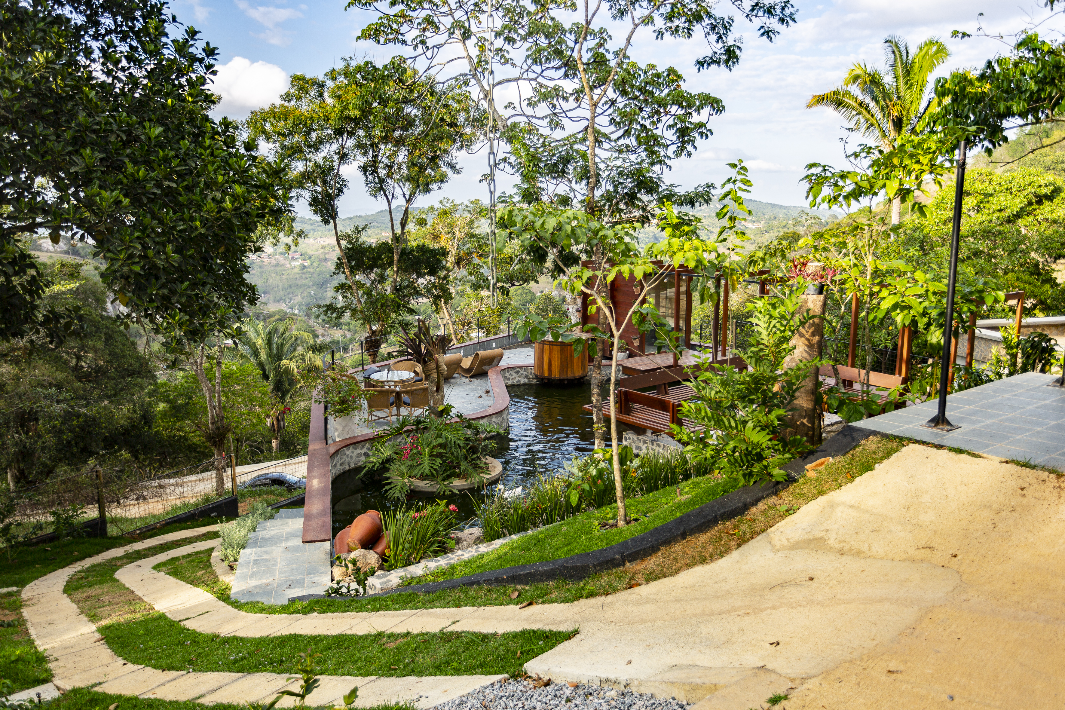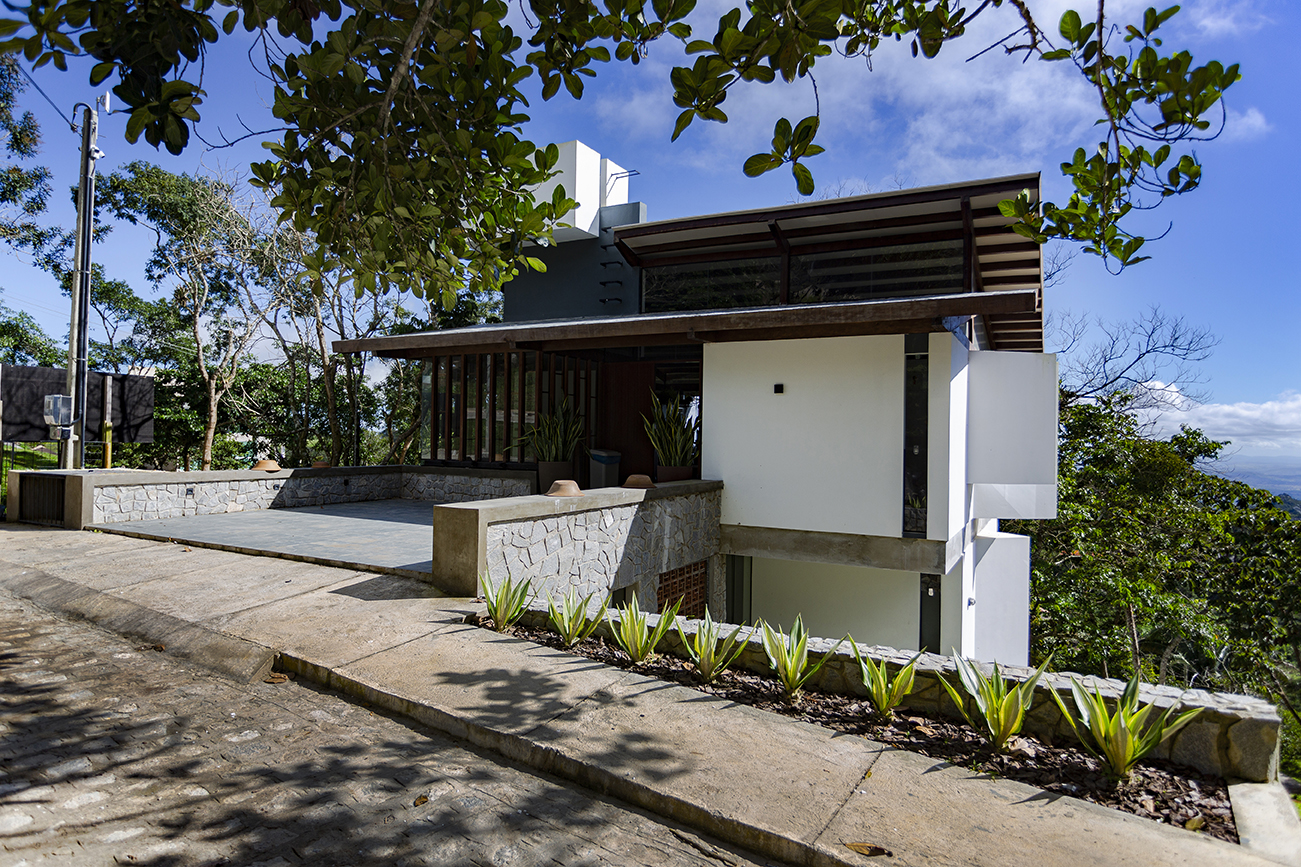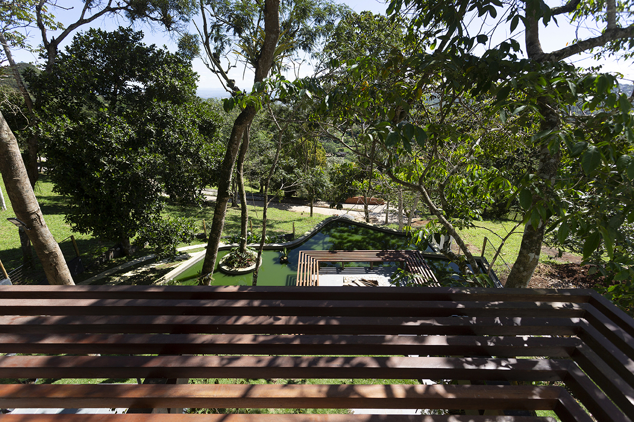 O acidentado terreno em declive fica dentro de um condomínio fechado na Serra Negra, distrito rural na cidade de Bezerros – PE, que foi projetado pelo nosso escritório com um traçado de urbanismo desafiador, que propunha implantar os 79 lotes sem suprimir uma única árvore do sítio original. Ao visitá-lo, nós entendemos que a cota que nos interessaria para implantação da área social da casa seria a mais alta, no nível da copa das árvores, mesmo nível da rua de acesso. A casa se projetaria sobre o lote, que descia, e se integraria às copas das árvores, desde sempre habitantes daquele espaço.